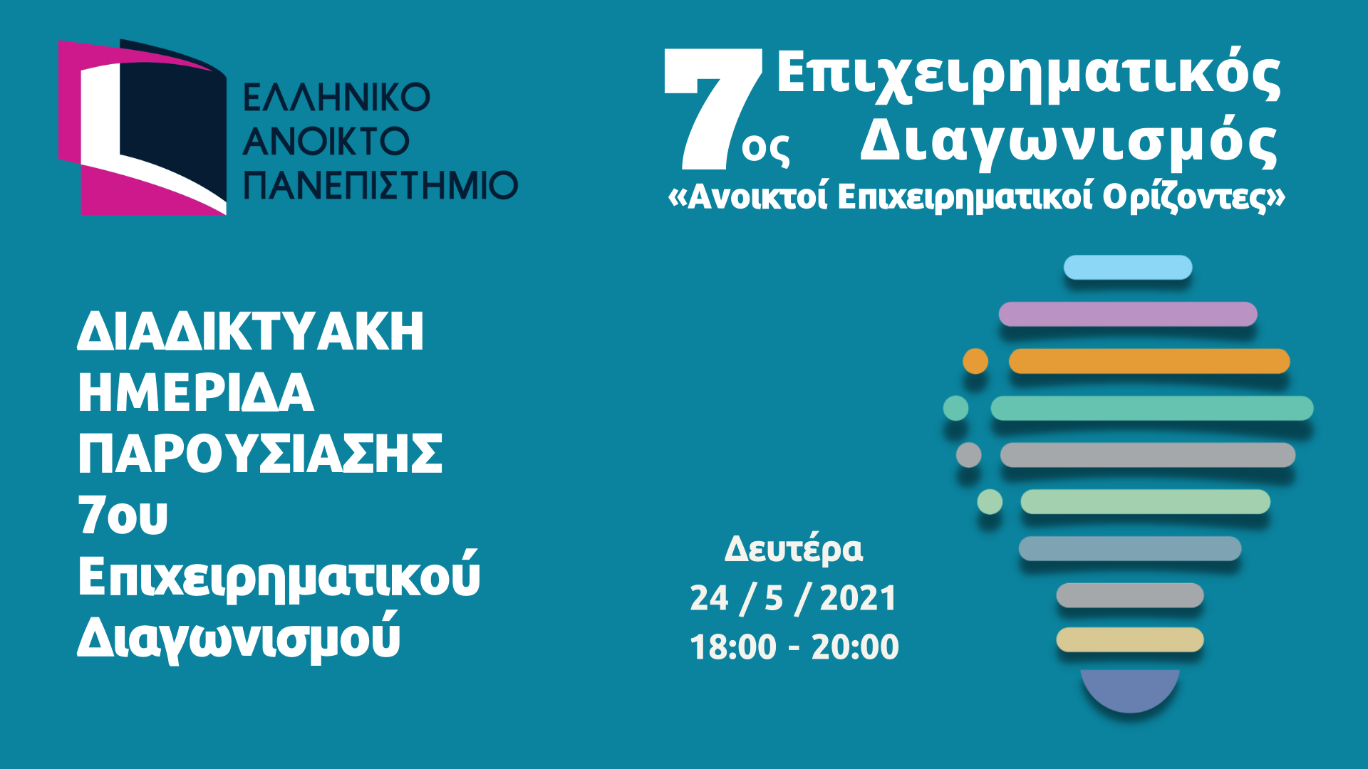 Ε.Α.Π. > Ανακοινώσεις > Τρέχουσες > Διαδικτυακή Ημερίδα Παρουσίασης 7ου Επιχειρηματικού Διαγωνισμού ΕΑΠ στις 24/5/2021
