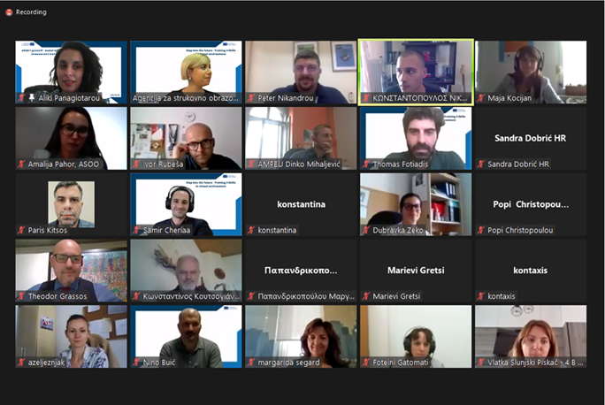 Στο πλαίσιο της συνάντησης, που προσέλκυσε περισσότερους από 40 εκπροσώπους των τομέων της εκπαίδευσης, της εκπαίδευσης στον χώρο εργασίας και της χάραξης πολιτικής τόσο σε εθνικό όσο και σε ευρωπαϊκό επίπεδο στην Επαγγελματική Εκπαίδευση και Κατάρτιση (ΕΕΚ), πραγματοποιήθηκε επισκόπηση των δραστηριοτήτων του Έργου, συζητήθηκε το Ερευνητικό Πρόγραμμα του Έργου και έγινε ενημέρωση για την Διαχείριση των Ψηφιακών Δεξιοτήτων για εκπαιδευτικούς ΕΕΚ σύμφωνα με το DigCompEdu.