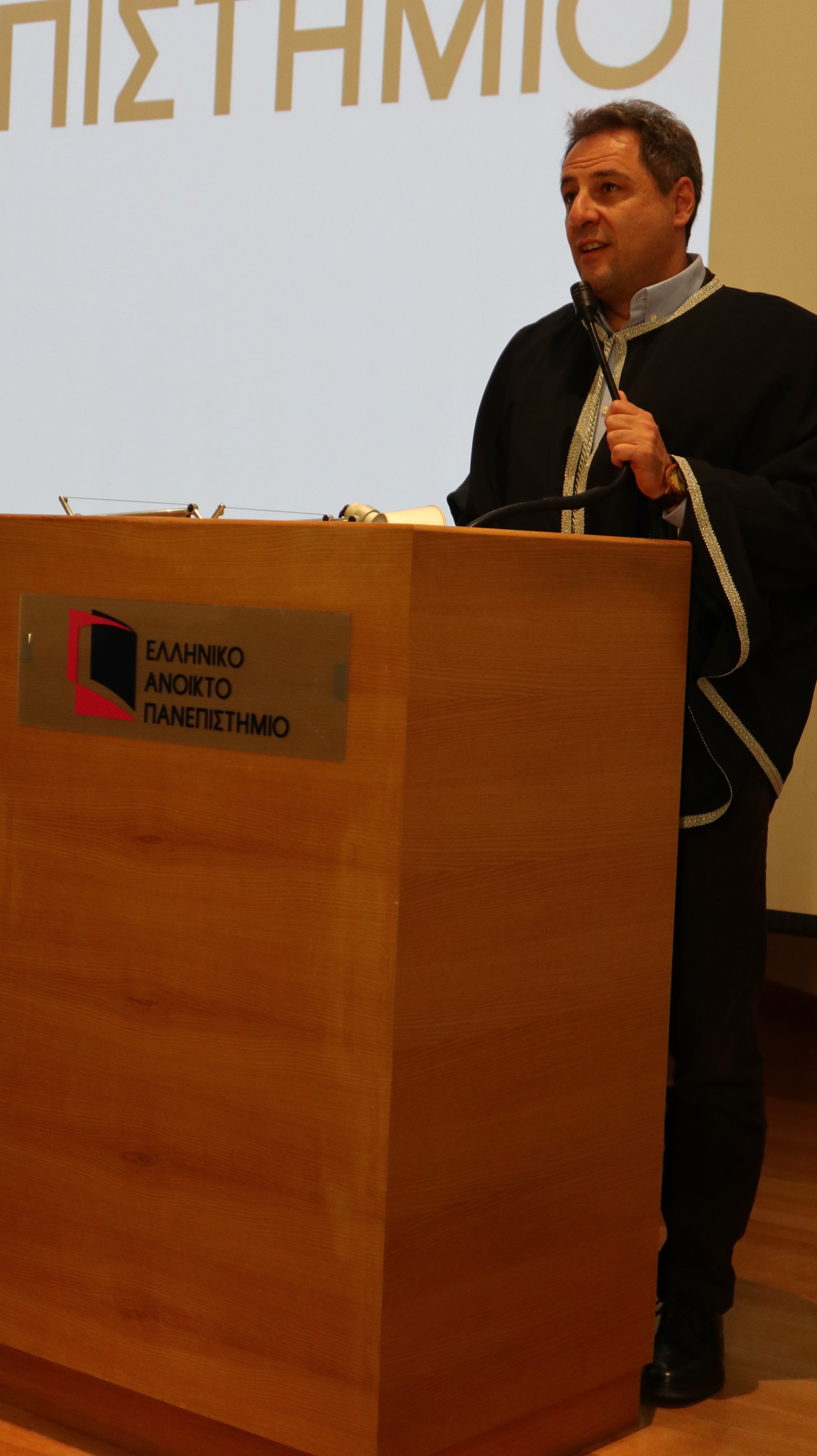 O Αντιπρόεδρος Οικονομικών, Προγραμματισμού και Ανάπτυξης Αναπληρωτής Καθηγητής κ. Γεώργιος Σκρουμπής ευχήθηκε συγχαρητήρια στους φοιτητές για την επιτυχή κατάληξη των σπουδών τους και παρότρυνε τους αποφοίτους «να ισχυροποιήσουν τους δεσμούς της εξ αποστάσεως κοινότητας με αρωγούς το νεοσύστατο «Δίκτυο Αποφοίτων», το Γραφείο Διασύνδεσης, Επιχειρηματικότητας και Καινοτομίας αλλά και μέσω της εφημερίδας του ΕΑΠ «OPEN 2U» που θα λαμβάνουν μηνιαίως οι απόφοιτοί μας».