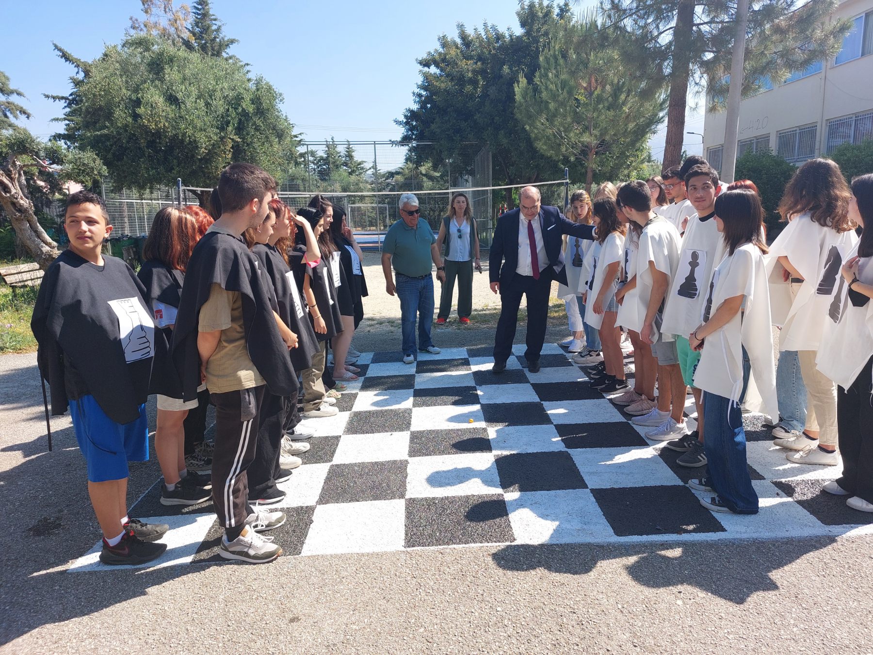 Το 7ο ΕΠΑΛ Πάτρας και η Ελληνική Σκακιστική Ομοσπονδία, σε συνεργασία με το NOESIS (κέντρο διάδοσης επιστημών και μουσείο τεχνολογίας) πραγματοποίησαν σήμερα 18/5/22 στο πλαίσιο του σχεδίου δράσης του προγράμματος ΕΣΠΑ «Μία Νέα Αρχή για τα ΕΠΑΛ» με τίτλο “Αισθητική και ποιοτική αναβάθμιση και εξωραϊσμός του αύλειου χώρου του σχολείου – Παροχή ερεθισμάτων και κινήτρων δράσης για τους μαθητές” ένα σημαντικό σκακιστικό – θεατρικό δρώμενο που παρουσίασαν οι μαθητές με την υπαίθρια σκακιέρα που κατασκεύασαν στον προαύλιο χώρο του σχολείου, με τους ίδιους στο ρόλο των σκακιστικών κομματιών.