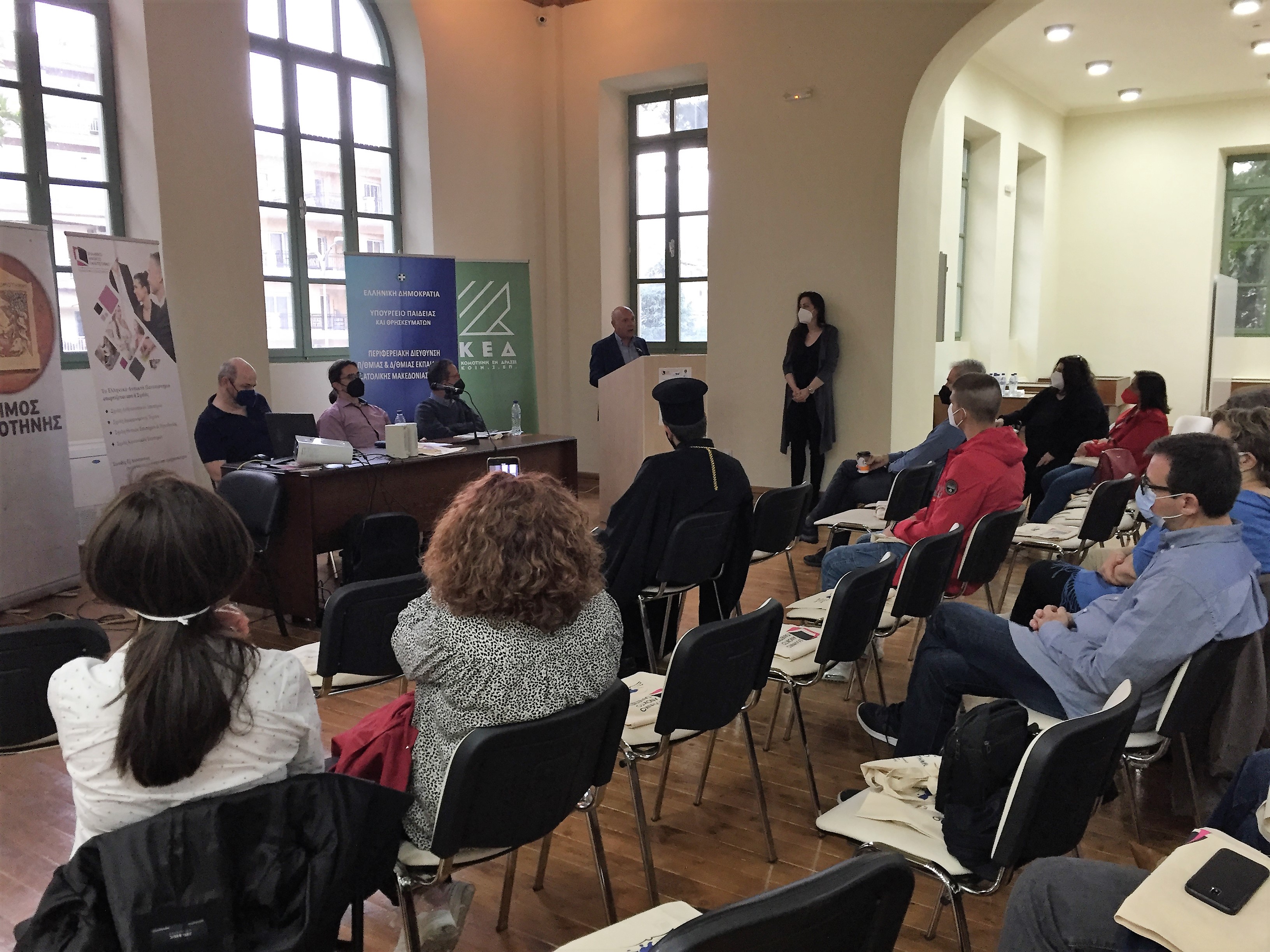 Στην εκδήλωση που συγκέντρωσε το ενδιαφέρον της εκπαιδευτικής κοινότητας χαιρετισμούς απηύθυναν ο Αντιπρόεδρος Διοικητικών, Ακαδημαϊκών Υποθέσεων και Φοιτητικής Μέριμνας του ΕΑΠ, Καθηγητής κ. Ευσταθόπουλος Ευστάθιος, ο Περιφερειακός Διευθυντής Πρωτοβάθμιας και Δευτεροβάθμιας Εκπαίδευσης Αν. Μακ. Θράκης κ. Μπαντίκος Κωνσταντίνος, ο Δ/ντης του ΜΠΣ «Δημιουργική Γραφή» του ΕΑΠ, Καθηγητής κ. Καγιαλής Παναγιώτης καθώς και οι Αναπλ. Καθηγήτριες του ΕΑΠ κα Βλαβιανού Αντιγόνη και Πατερίδου Γεωργία.