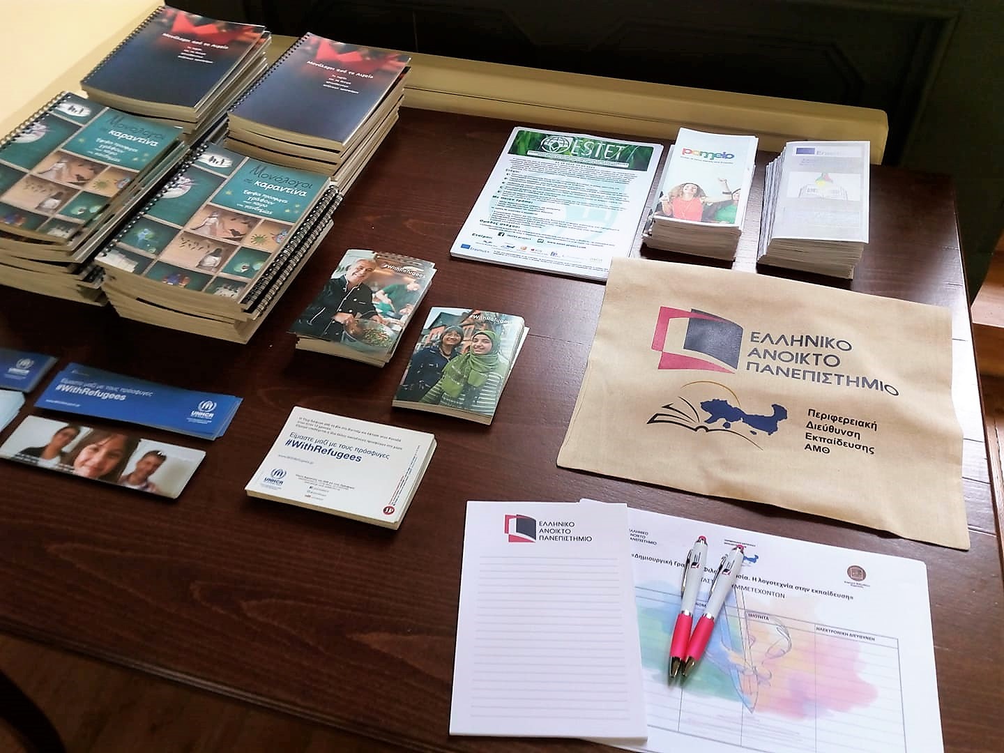 Στους συμμετέχοντες διανεμήθηκε έντυπο υλικό του εκπαιδευτικού προγράμματος «Κι αν ήσουν εσύ;» που υλοποιείται από το 2015 από το Πανελλήνιο Δίκτυο για το Θέατρο στην Εκπαίδευση σε συνεργασία με Ύπατη Αρμοστεία του ΟΗΕ για τους Πρόσφυγες.