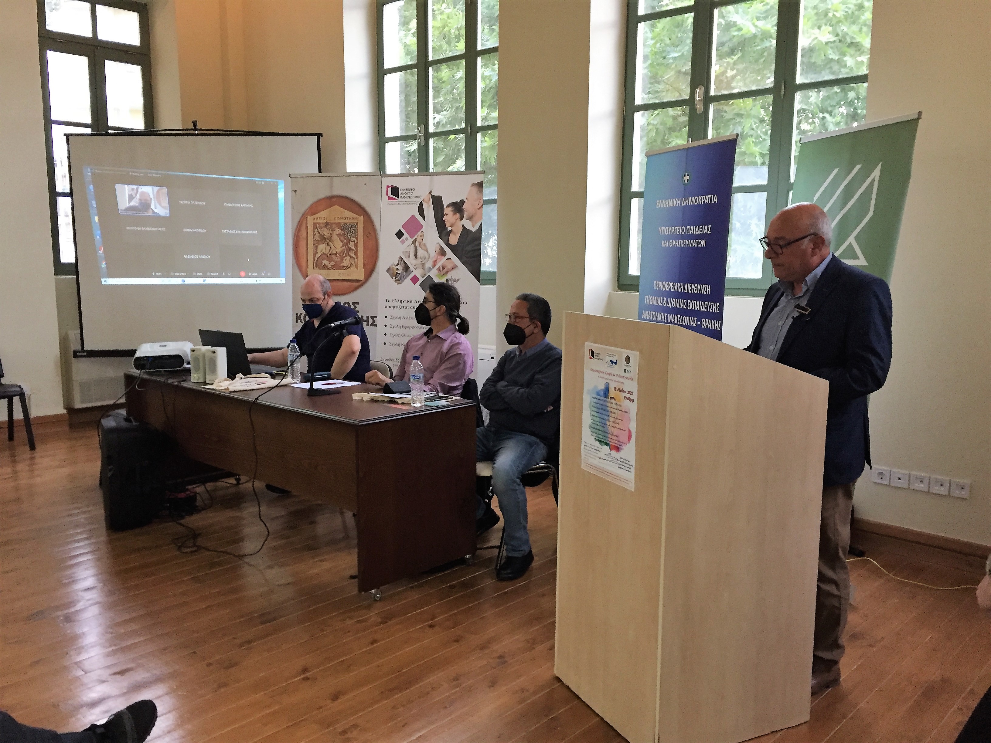 Με μεγάλη επιτυχία πραγματοποιήθηκε, το απόγευμα της Τετάρτης, 18 Μαϊου 2022 και ώρα 19:00 μ.μ. στην αίθουσα εκδηλώσεων της Δημοτικής Βιβλιοθήκης Κομοτηνής, η εκδήλωση με θέμα: «Δημιουργική γραφή και φιλαναγνωσία. Η λογοτεχνία στην εκπαίδευση», που διοργάνωσε το Παράρτημα του ΕΑΠ στην Κομοτηνή και η Περιφερειακή Διεύθυνση Εκπαίδευσης Ανατολικής Μακεδονίας – Θράκης στα πλαίσια της προσπάθειας επικαιροποίησης και εμβάθυνσης των γνώσεων των φοιτητών, αποφοίτων και εκπαιδευτικών όλων των βαθμίδων στο συγκεκριμένο αντικείμενο.