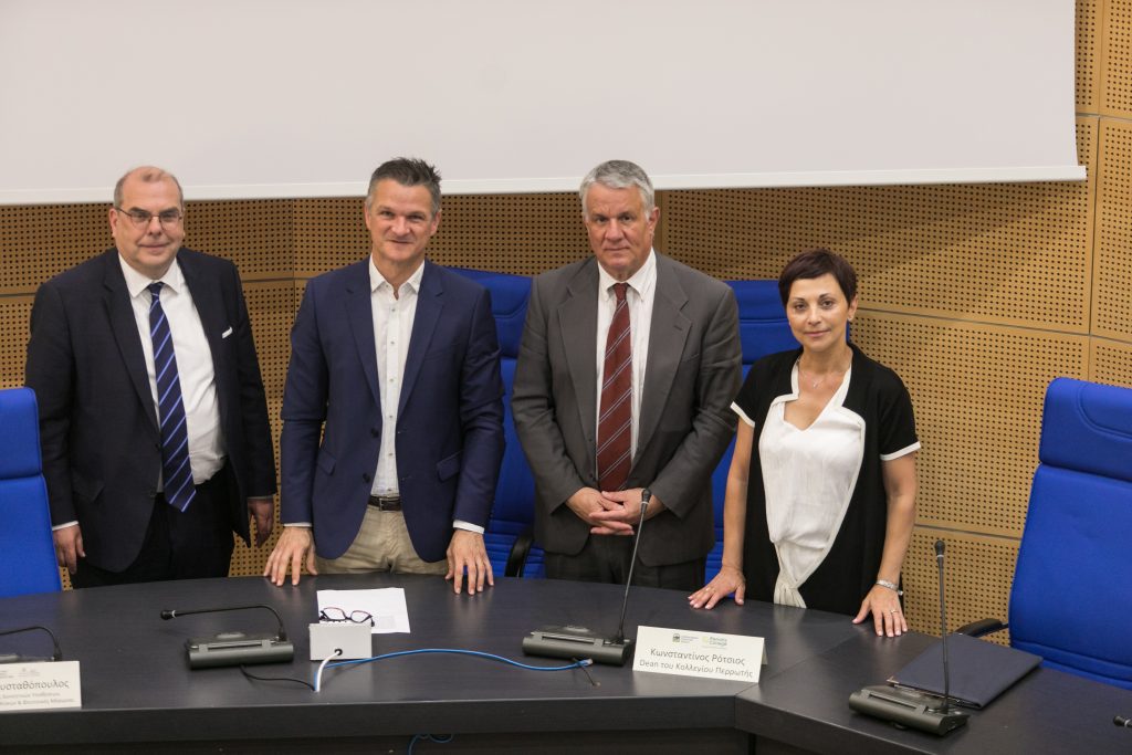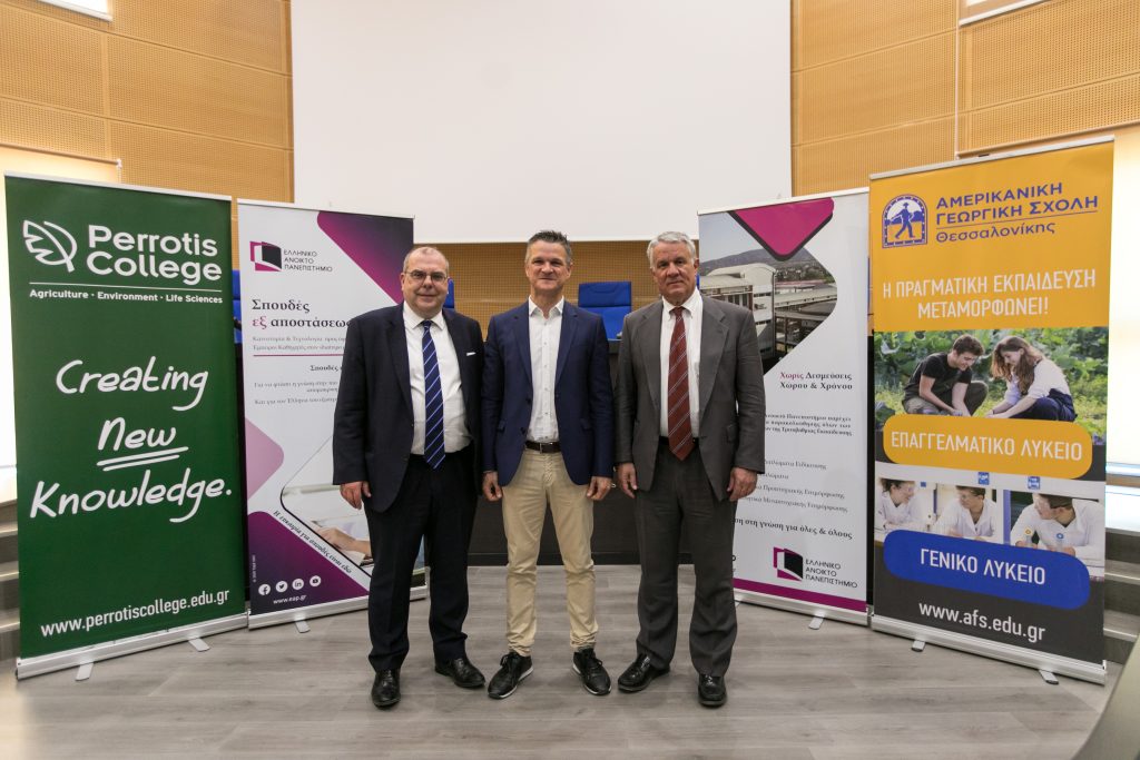 Εκ μέρους της Αμερικανικής Γεωργικής Σχολής, ο Διευθυντής του Perrotis College, κ. Κωνσταντίνος Ρότσιος, υποστήριξε την ανάγκη για συνεχόμενη εκπαίδευση του αγροτικού πληθυσμού της χώρας, τονίζοντας τη δραματική θέση της Ελλάδας (26η) έναντι των υπόλοιπων χωρών της Ευρώπης σε απόδοση αγροτικής παραγωγής. Επίσης, δικαιολόγησε την επιλογή της πόλης της Λάρισας για την παρουσίαση των καινοτόμων επιμορφωτικών προγραμμάτων, ως το κέντρο της αγροτικής παραγωγής της χώρας μας.