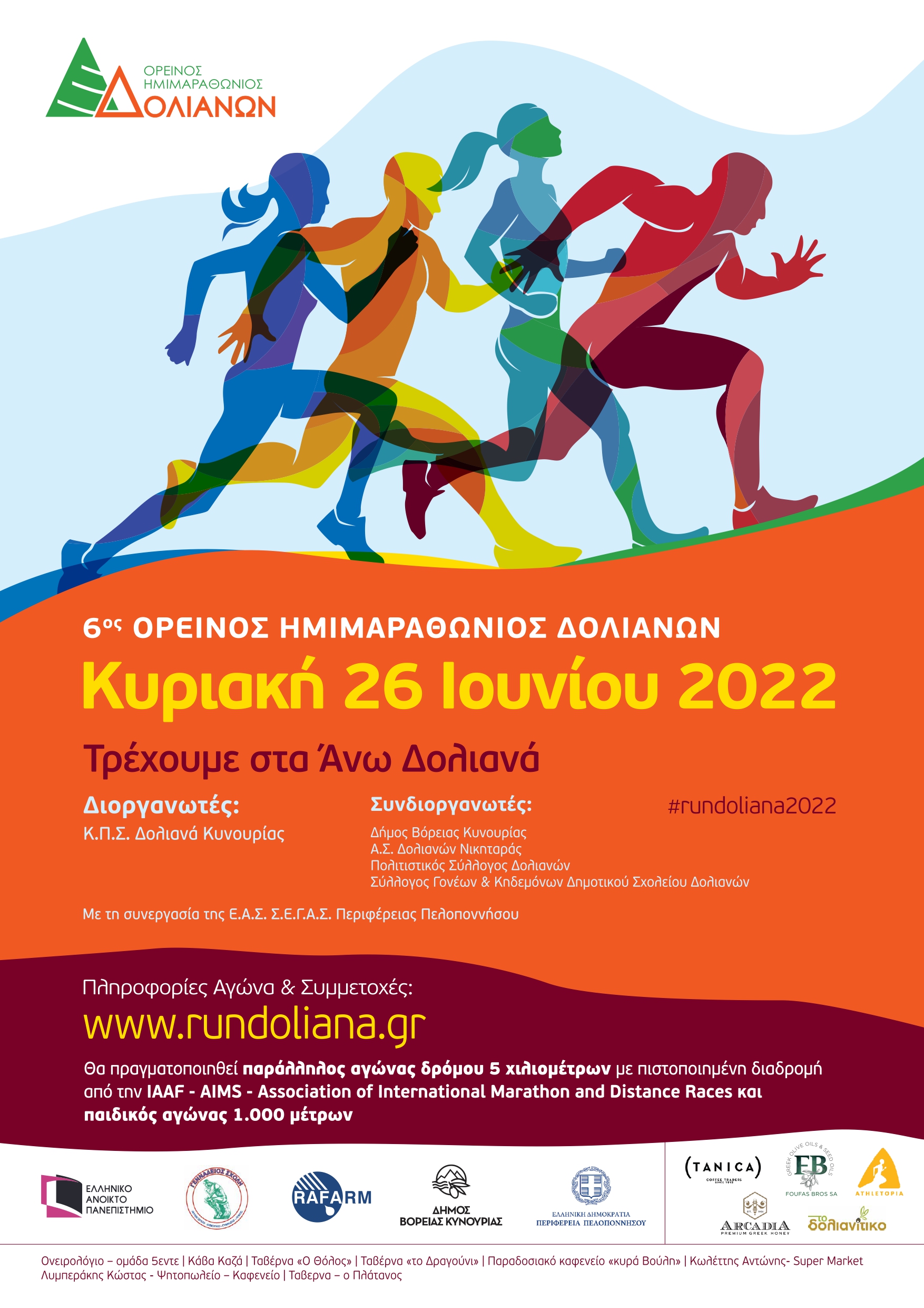 Ύστερα από 2 χρόνια απουσίας λόγω των ιδιαίτερων συνθηκών που δημιούργησε η πανδημία, ο 6ος Ορεινός Ημιμαραθώνιος Δολιανών πραγματοποιείται ξανά, την Κυριακή 26 Ιουνίου στα Άνω Δολιανά Αρκαδίας.