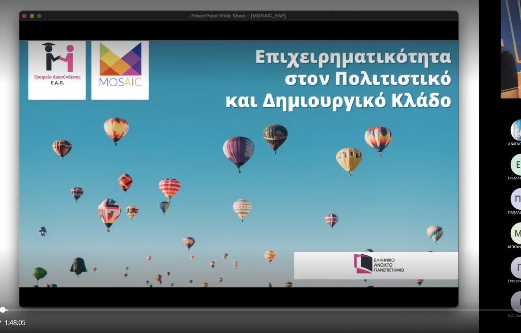 Με επιτυχία πραγματοποιήθηκε χθες Τετάρτη 19-10-2022 η 8η Ομαδική Συμβουλευτική Συνεδρία του Γραφείου Διασύνδεσης ΕΑΠ σε συνεργασία με τον Οργανισμό Πολιτιστικής και Κοινωνικής Καινοτομίας-MOSAIC.
