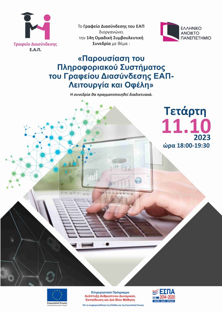 14η Ομαδική Συμβουλευτική Συνεδρία του Γραφείου Διασύνδεσης ΕΑΠ με θέμα : «Παρουσίαση του Πληροφοριακού Συστήματος του Γραφείου Διασύνδεσης ΕΑΠ-Λειτουργία και Οφέλη»