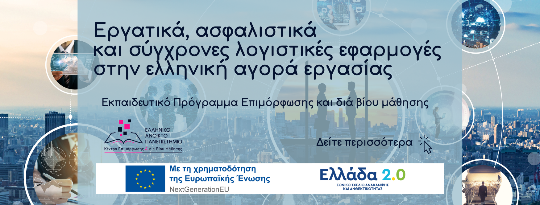 Το Κέντρο Επιμόρφωσης και Διά Βίου Μάθησης (ΚΕΔΙΒΙΜ ΕΑΠ) συμμετέχει ως Πάροχος Κατάρτισης στη δράση της Δημόσιας Υπηρεσίας Απασχόλησης (ΔΥΠΑ) για το Β’ κύκλο κατάρτισης σε ψηφιακές και πράσινες δεξιότητες για 30.000 ανέργους προσφέροντας το πρόγραμμα κατάρτισης με τίτλο: