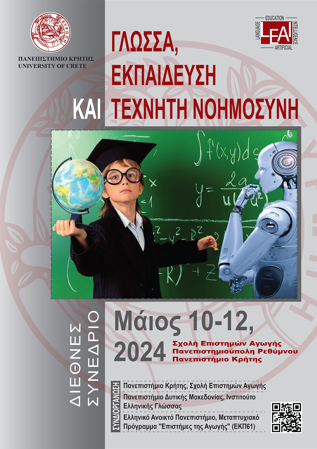 Διεθνές Συνέδριο με θέμα: «Γλώσσα, Εκπαίδευση και Τεχνητή Νοημοσύνη» (Πανεπιστήμιο Κρήτης, Πανεπιστήμιο Δ. Μακεδονίας & ΕΑΠ, Ρέθυμνο 10 – 12 Μαΐου 2024)
