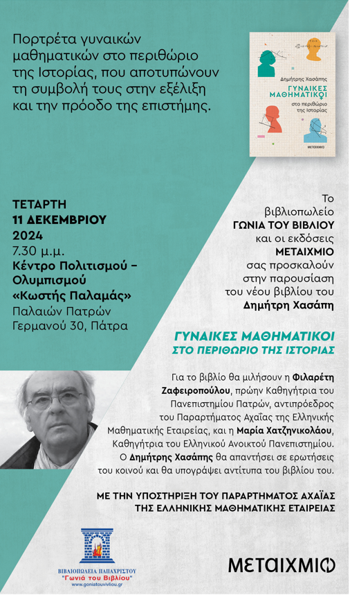 Παρουσίαση βιβλίου  «ΓΥΚΑΙΚΕΣ ΜΑΘΗΜΑΤΙΚΟΙ ΣΤΟ ΠΕΡΙΘΩΡΙΟ ΤΗΣ ΙΣΤΟΡΙΑΣ»