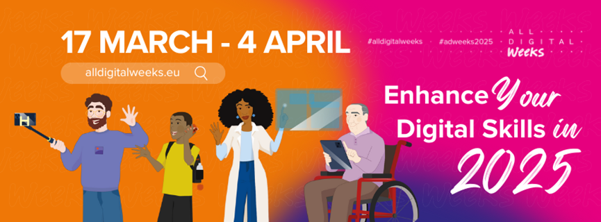 Η καμπάνια «ALL DIGITAL Weeks 2025» θα λάβει χώρα από τις 17 Μαρτίου έως τις 4 Απριλίου 2025, με κεντρική θεματική «Καταρτισμένοι Ψηφιακοί Πολίτες-Καταρτισμένες Ψηφιακές Πολίτισσες». Διοργανώνεται από το ευρωπαϊκό Δίκτυο ALL DIGITAL (AD), ένα από τα κορυφαία πανευρωπαϊκά Δίκτυα, το οποίο αντιπροσωπεύει οργανισμούς-μέλη που εργάζονται για την ενίσχυση των ψηφιακών δεξιοτήτων και ικανοτήτων όλων των ατόμων στην Ευρώπη.