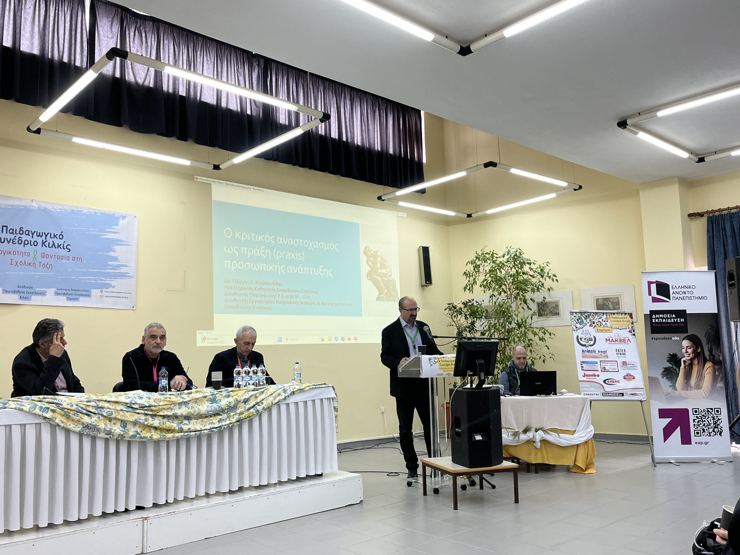 •             Αναπληρωτή Καθηγητή κ. Γεωργίου Κουλαουζίδη (Ε.Α.Π.), με θέμα: «Η διεργασία του κριτικού αναστοχασμού στην επαγγελματική ανάπτυξη των εκπαιδευτικών».