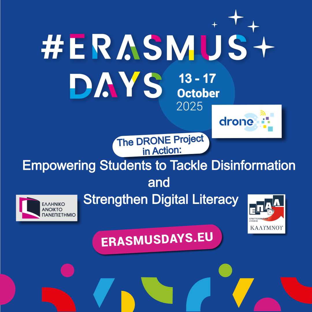 Ε.Α.Π. > Ανακοινώσεις > Τρέχουσες > Νέα δράση του Ευρωπαϊκού Προγράμματος DRONE : Ενδυνάμωση των μαθητών για την αντιμετώπιση της παραπληροφόρησης και την ενίσχυση της ψηφιακής παιδείας