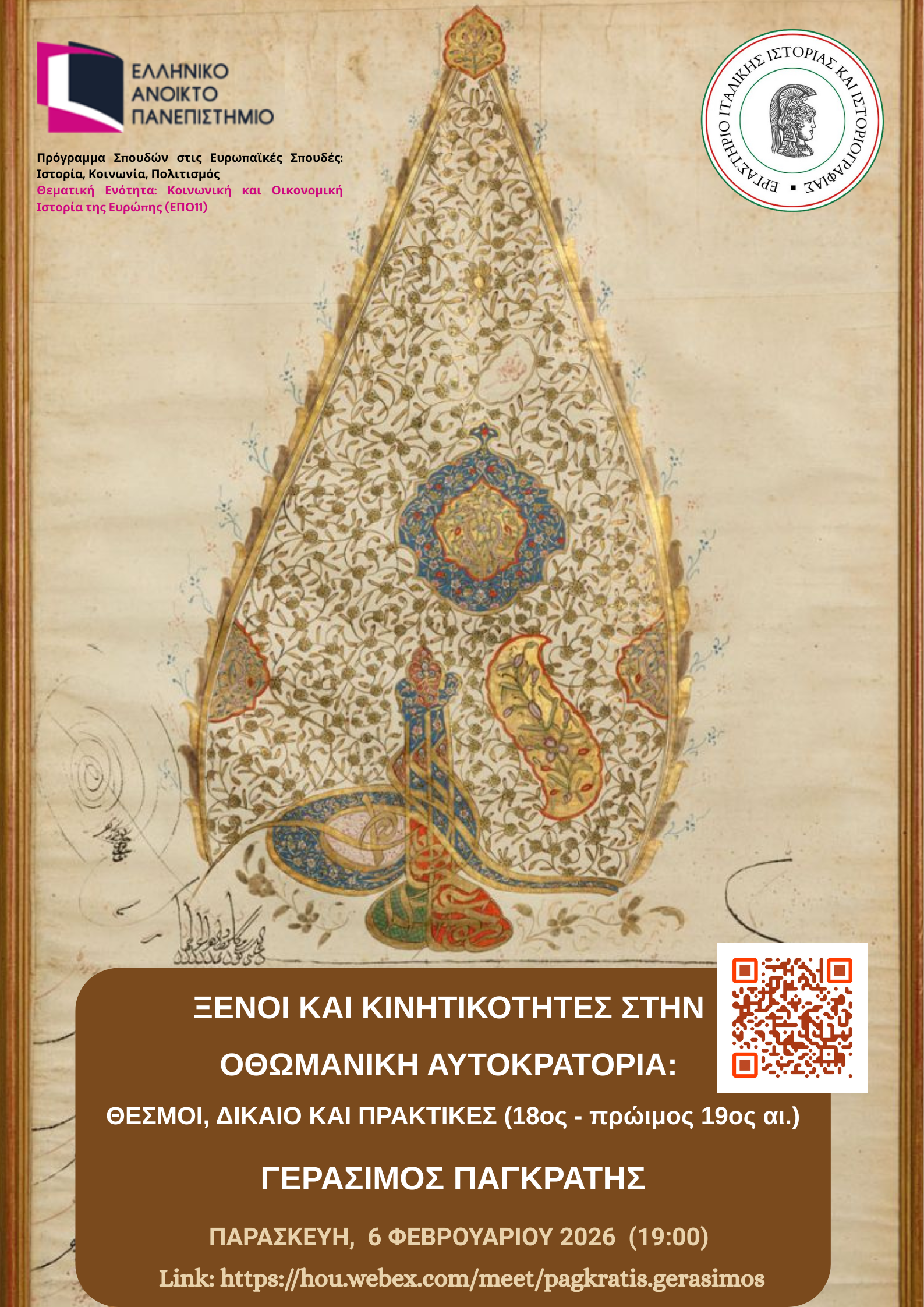 ΕΠΟ11 (ΠΣ ΕΠΟ), Διάλεξη 6.2.2026: Ξένοι και Κινητικότητες στην Οθωμανική Αυτοκρατορία (18ος – πρώιμος 19ος αι.)