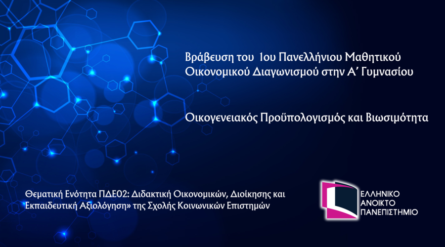 Η Σχολή Κοινωνικών Επιστημών του Ελληνικού Ανοικτού Πανεπιστημίου, στο πλαίσιο του Ειδικού Προγράμματος Παιδαγωγικής και Διδακτικής Επάρκειας – «Θεματική Ενότητα ΠΔΕ02: Διδακτική Οικονομικών, Διοίκησης και Εκπαιδευτική Αξιολόγηση», πραγματοποίησε τον 1ο Πανελλήνιο Μαθητικό Οικονομικό Διαγωνισμού στην Α’ Γυμνασίου, για το σχολικό έτος 2022-2023 με θέμα: «ΟΙΚΟΓΕΝΕΙΑΚΟΣ ΠΡΟΫΠΟΛΟΓΙΣΜΟΣ ΚΑΙ ΒΙΩΣΙΜΟΤΗΤΑ». Από τα αποτελέσματα της αξιολόγησης, προκύπτει ότι...