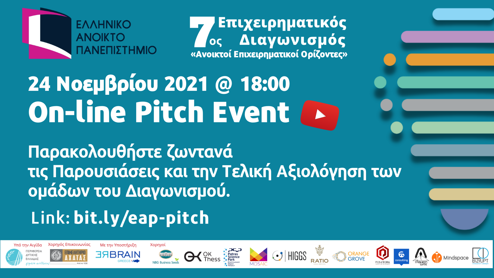 ΔΕΛΤΙΟ ΤΥΠΟΥ Διαδικτυακά οι Τελετές Απονομής Μεταπτυχιακών Τίτλων Ειδίκευσης Ακαδημαϊκού Έτους 2020-2021 Διαδικτυακά, μέσω live streaming θα γίνουν και φέτος την Κυριακή 14 Νοεμβρίου, οι Απονομές Μεταπτυχιακών Τίτλων Σπουδών, λόγω των έκτακτων συνθηκών της πανδημίας του COVID 19 που συνεχίζονται, και για λόγους προστασίας της δημόσιας υγείας. Για τρίτη φορά έτσι και μετά την επιτυχία του ΕΑΠ στις «ηλεκτρονικές» εξεταστικές περιόδους των προηγούμενων ετών, θα πραγματοποιηθούν μέσω του Διαδικτύου και όλες οι σχετικές τελετές απονομής των τίτλων...