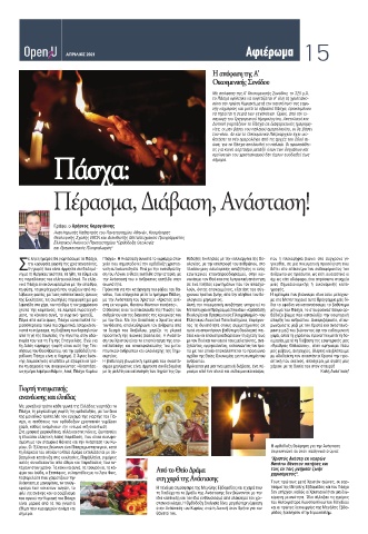 ε λίγες ηµέρες θα γιορτάσουµε το Πάσχα, Πάσχα». Η Ανάσταση συνιστά το κυρίαρχο στοι- θόδοξης Εκκλησίας µε την καλλιέργεια της Θε- που η πλειοψηφία βιώνει στο σύγχρονο γί-