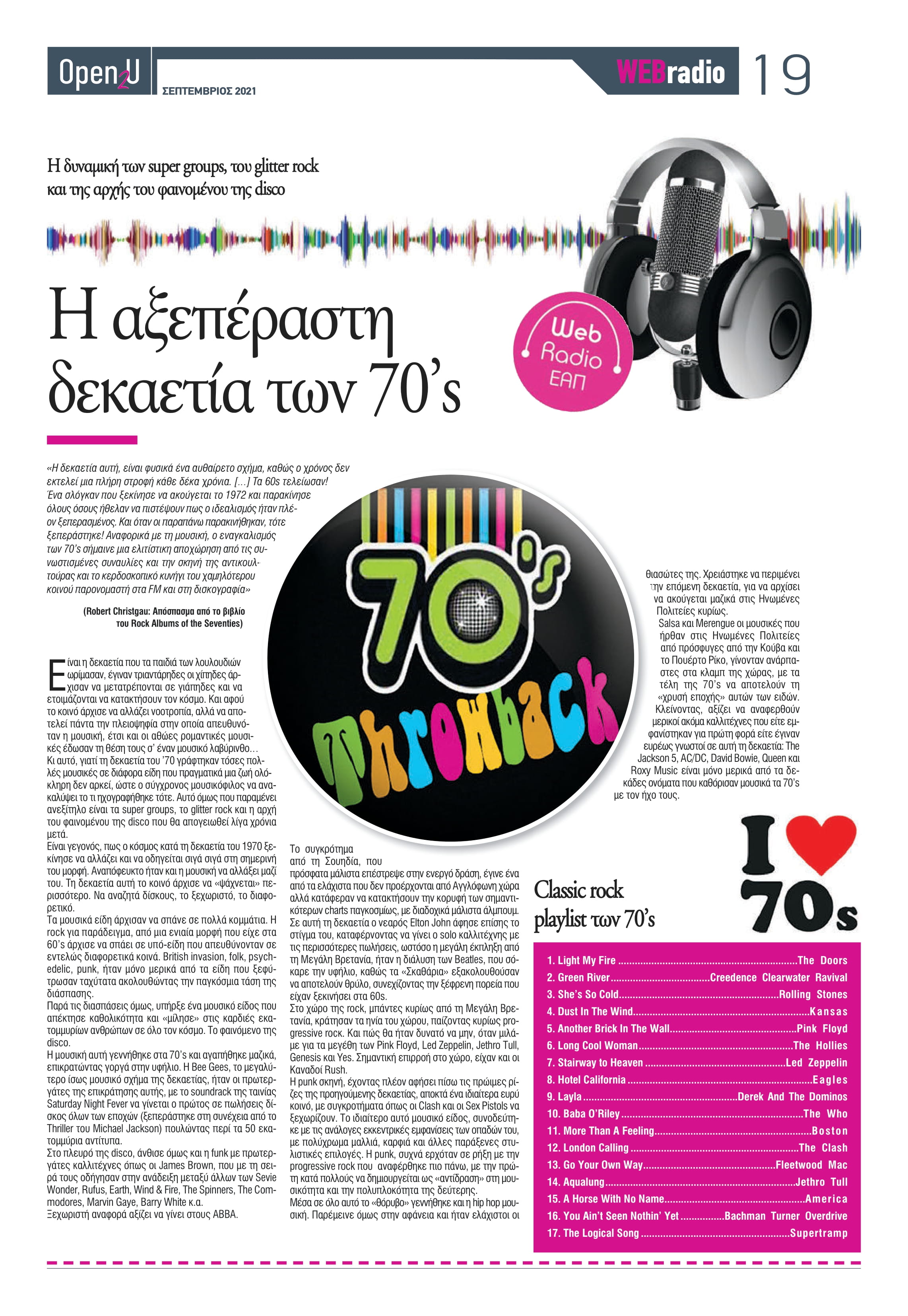 Radio του ΕΑΠ, συνεχίζοντας το ταξίδι τους στις προ- πολλές δεκαετίες ακόµα. 80’s ήταν η λάµψη που σκορπίστηκε, όταν η ντισκοµπάλα των 70’s έσκασε µε βοή