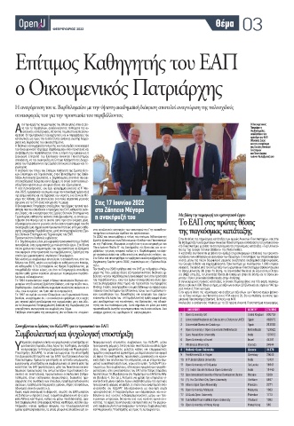 Ο κ. Βαρθολοµαίος είναι µια κορυφαία προσωπικότητα µε διεθνή Σχολής ∆ιασώσεως των Πολιτισµικών Αγαθών του Πανεπιστηµί- 5η θέση µεταξύ των Ευρωπακών Ανοικτών Πανεπιστηµίων κατατάσσεται το Ελληνικό Ανοι-