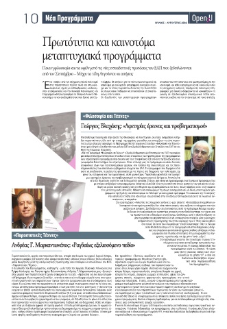«Με το Πρόγραµµα "Φιλοσοφία και Τέχνες" η Σχολή Ανθρωπιστικών Επιστηµών του ΕΑΠ προσφέρει