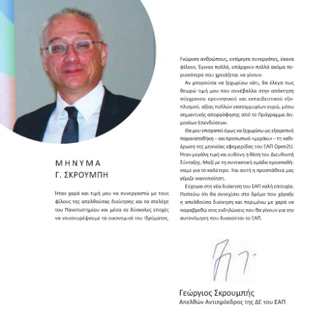 Εύχομαι στη νέα διοίκηση του ΕΑΠ καλή επιτυχία.