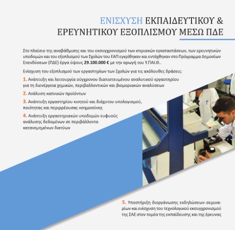 Ενίσχυση του εξοπλισμού των εργαστηρίων των Σχολών για τις ακόλουθες δράσεις:
