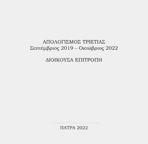 ΑΠΟΛΟΓΙΣΜΟΣ ΤΡΙΕΤΙΑΣ Σεπτέμβριος 2019 – Οκτώβριος 2022 ΔΙΟΙΚΟΥΣΑ ΕΠΙΤΡΟΠΗ ΠΑΤΡΑ 2022