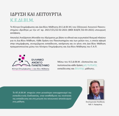 Το Κέντρο Επιμόρφωσης και Δια Βίου Μάθησης (Κ.Ε.ΔΙ.ΒΙ.Μ.) του Ελληνικού Ανοικτού Πανεπι-