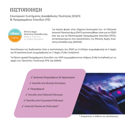 Ανοικτό Πανεπιστήμιο (ΕΑΠ) πιστοποιήθηκε τόσο για το ΕΣΔΠ