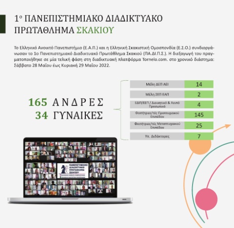 συνδιοργάνωσαν το 1ο Πανεπιστημιακό Διαδικτυακό Πρωτάθλημα Σκακιού (ΠΑ.ΔΙ.Π.Σ.). Η διεξαγωγή
