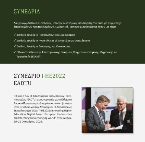 Διεξαγωγή Διεθνών Συνεδρίων, υπό την οικονομική υποστήριξη του ΕΑΠ, με συμμετοχή