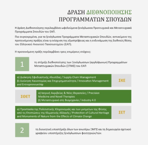 Πιο συγκεκριμένα, για τα ξενόγλωσσα Προγράμματα Μεταπτυχιακών Σπουδών, αντικείμενο της