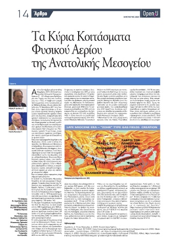 Ανδρέας Ν. Αγγελάκης (*) δίνο, όπου παρουσιάστηκαν οι 16 κύ- τασµα ανακαλύφθηκε το 2015 από την στις ΑΟΖ Ισραήλ και Αιγύπτου, αντί- κηρύχθηκανοι πρώτοιδιαγωνισµοί,χά-