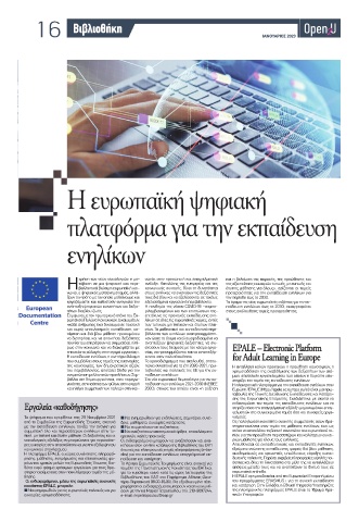 Η πλατφόρµα EPALE, ο χώρος συνάντησης, πληροφό- oks) για την εκπαίδευση ενηλίκων, επαγγελµατική εκ- ακαδηµαϊκούς και ερευνητές, υπεύθυνους χάραξης εκπαι-