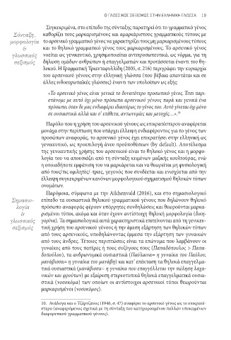 γένους τές/-τριες της ελληνικής. Ωστόσο, τα προσαρτήματά τους λειτουργούν βοηθη- γλωσσικός νοείται ως γενικευτικό, χρησιμοποιείται αντιπροσωπευτικά, ως νόρμα, για τη