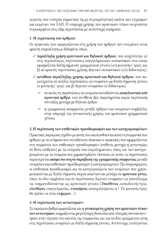 ονομάτων είναι και τα δεδομένα σχετικά με τα άρθρα, τα προσαρτήματα και τα των αντωνυμιών, εκφράζοντας μεγαλύτερη δυσκολία από πλευράς συντακτών/-