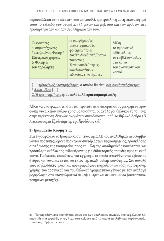 καθώς παρατηρούνται χρήσεις διπλής σήμανσης γένους και χρήσεις ουδέτερων 23. Τα παραδείγματα του πίνακα, όπως και των υπόλοιπων πινάκων του κεφαλαίου 3.3,
