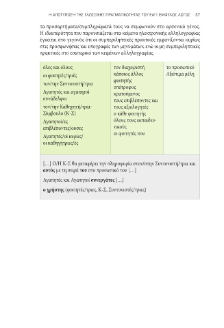 σεξισμό και τη συμπεριληπτική γλώσσα είναι ανάλογη με αυτή των διοικητικών Η ιδιαιτερότητα που παρουσιάζεται στα κείμενα ηλεκτρονικής αλληλογραφίας
