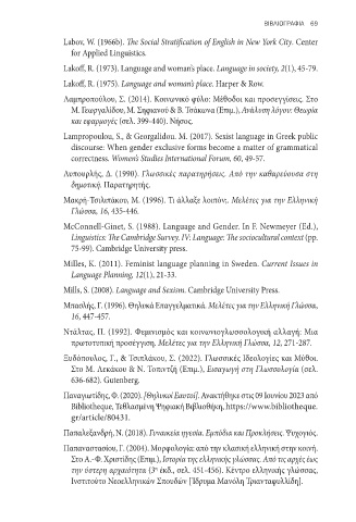 68 ΠΡΑΚΤΙΚΟΣ ΟΔΗΓΟΣ ΓΙΑ ΤΗ ΧΡΗΣΗ ΣΥΜΠΕΡΙΛΗΠΤΙΚΗΣ ΩΣ ΠΡΟΣ ΤΟ ΦΥΛΟ ΓΛΩΣΣΑΣ ΣΤΟ ΕΑΠ ΒΙΒΛΙΟΓΡΑΦΙΑ 69