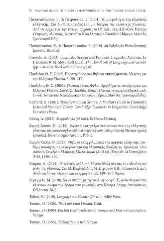 70 ΠΡΑΚΤΙΚΟΣ ΟΔΗΓΟΣ ΓΙΑ ΤΗ ΧΡΗΣΗ ΣΥΜΠΕΡΙΛΗΠΤΙΚΗΣ ΩΣ ΠΡΟΣ ΤΟ ΦΥΛΟ ΓΛΩΣΣΑΣ ΣΤΟ ΕΑΠ ΒΙΒΛΙΟΓΡΑΦΙΑ 71